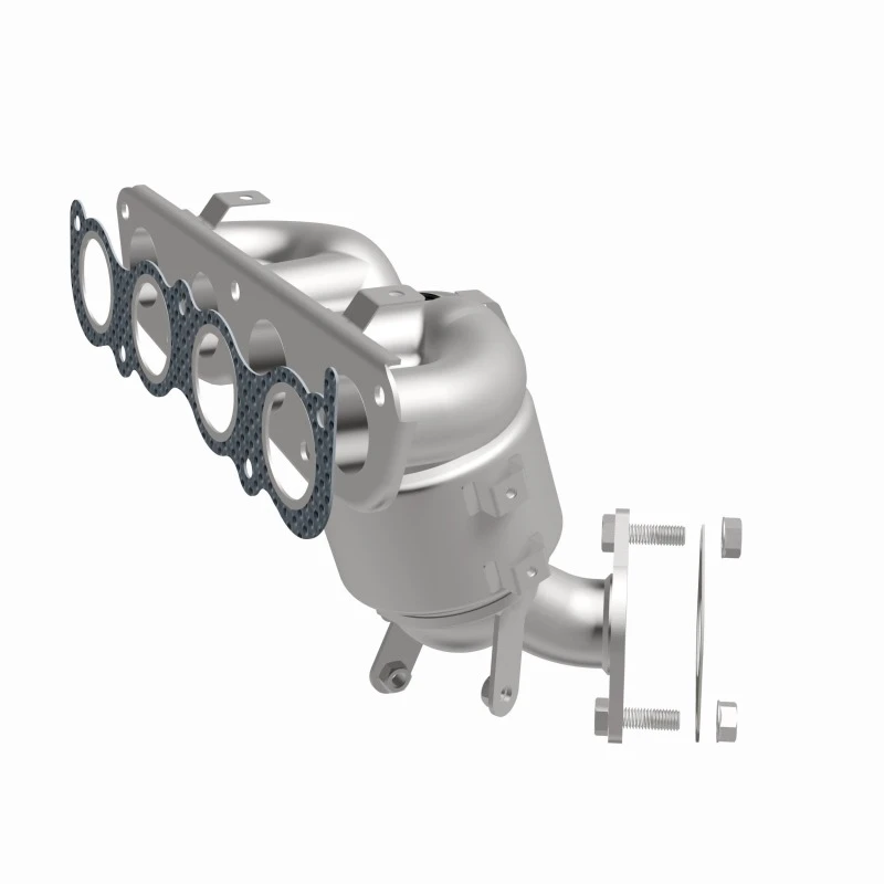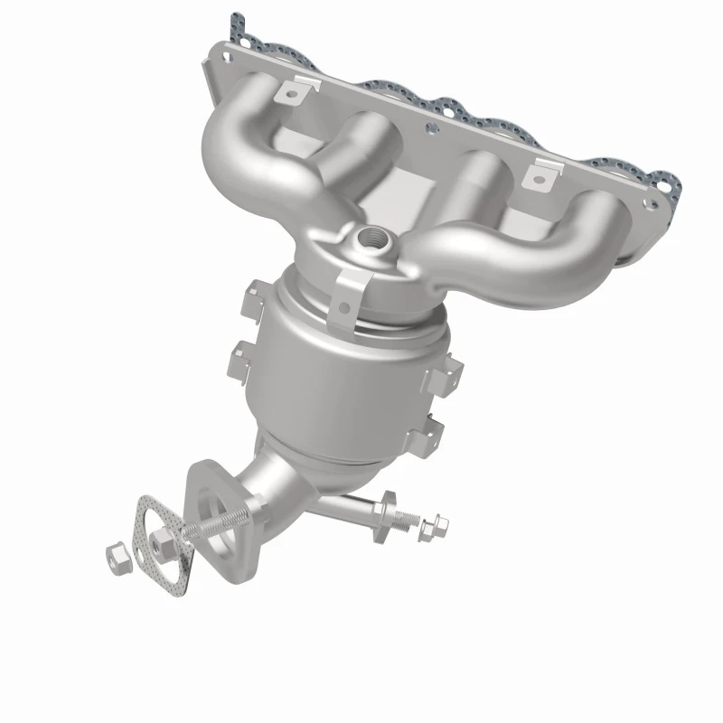 This Magnaflow manifold catalytic converter is designed specifically for the 2019-2020 Kia Forte with a 2.0L engine. It features OEM-grade construction to ensure a precise fit and reliable performance, helping to keep the check engine light off by meeting or exceeding Federal emissions standards. The direct-fit design allows for easy installation without cutting or welding, using included gaskets and hardware to reduce the risk of leaks.
