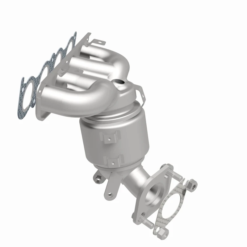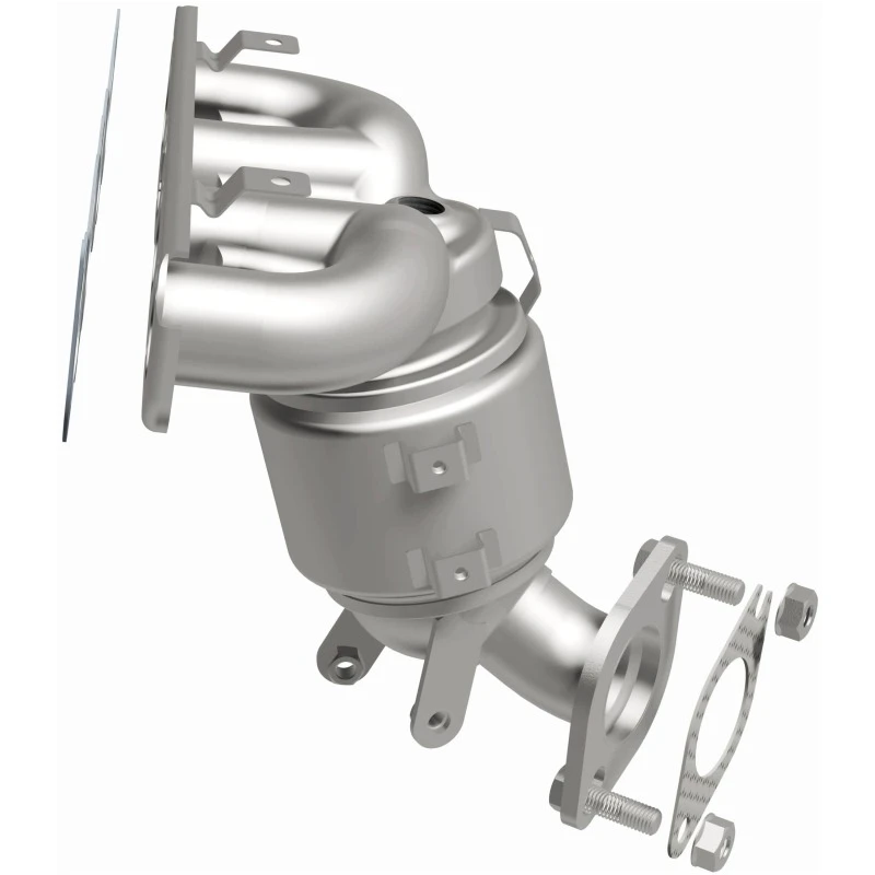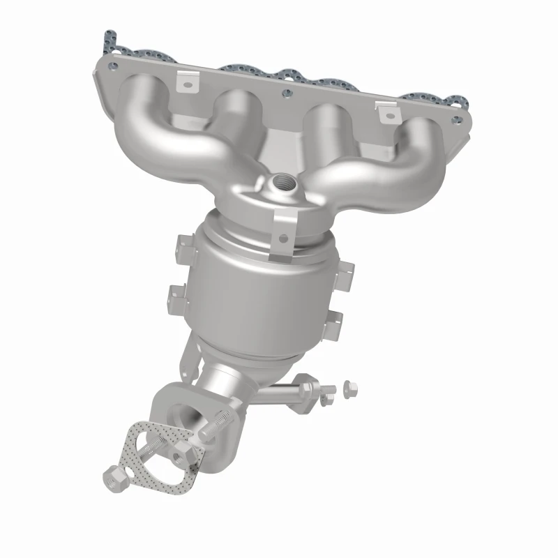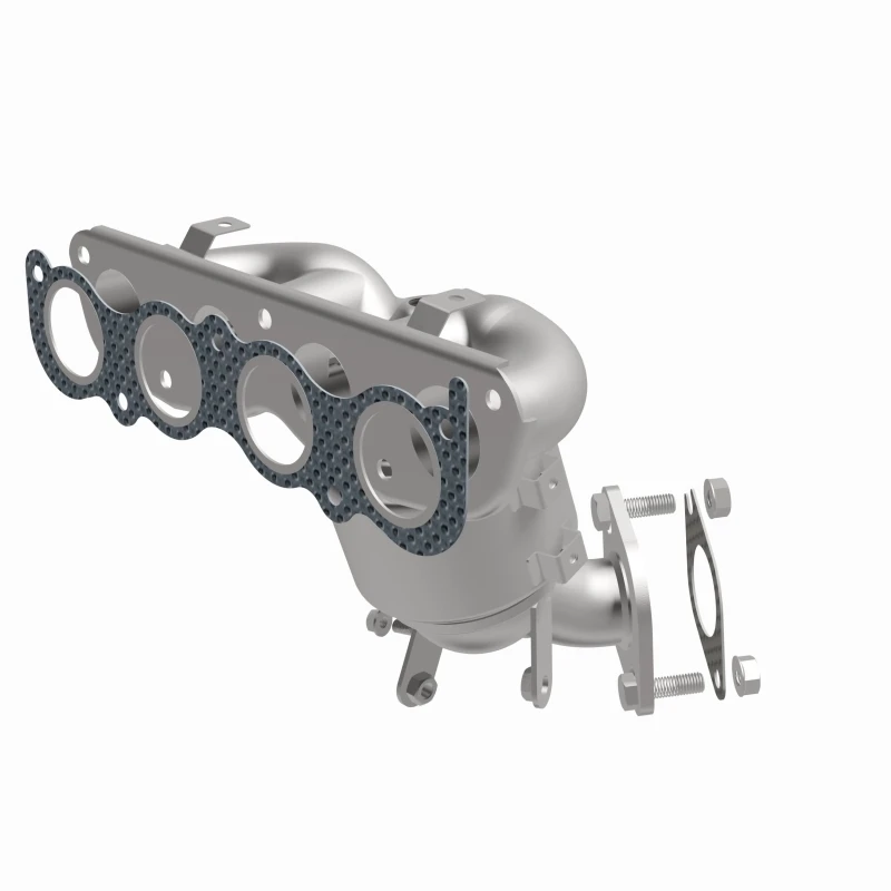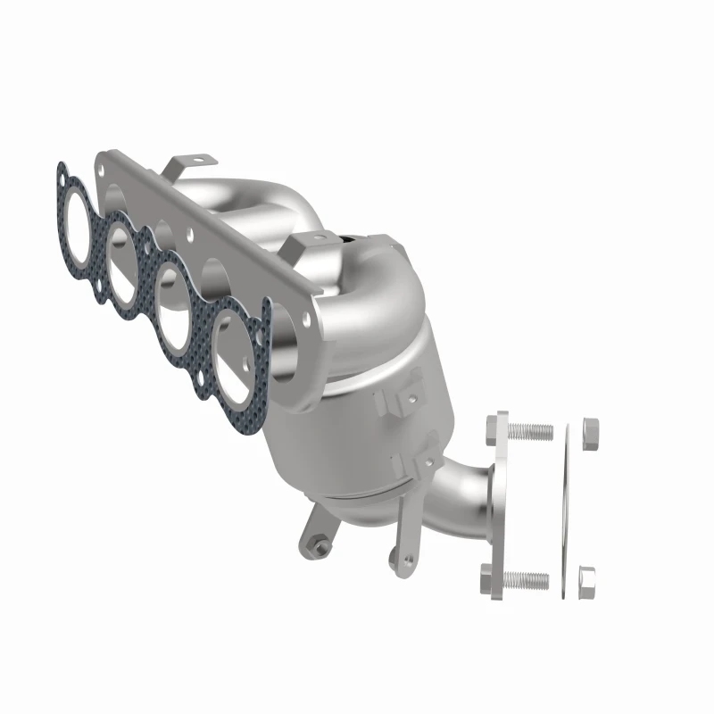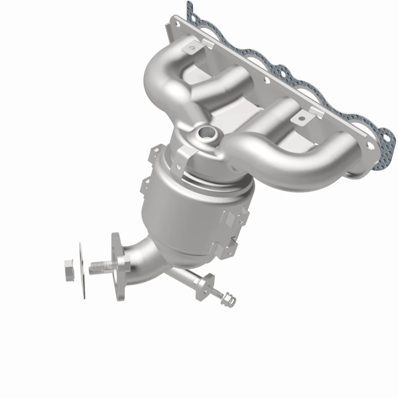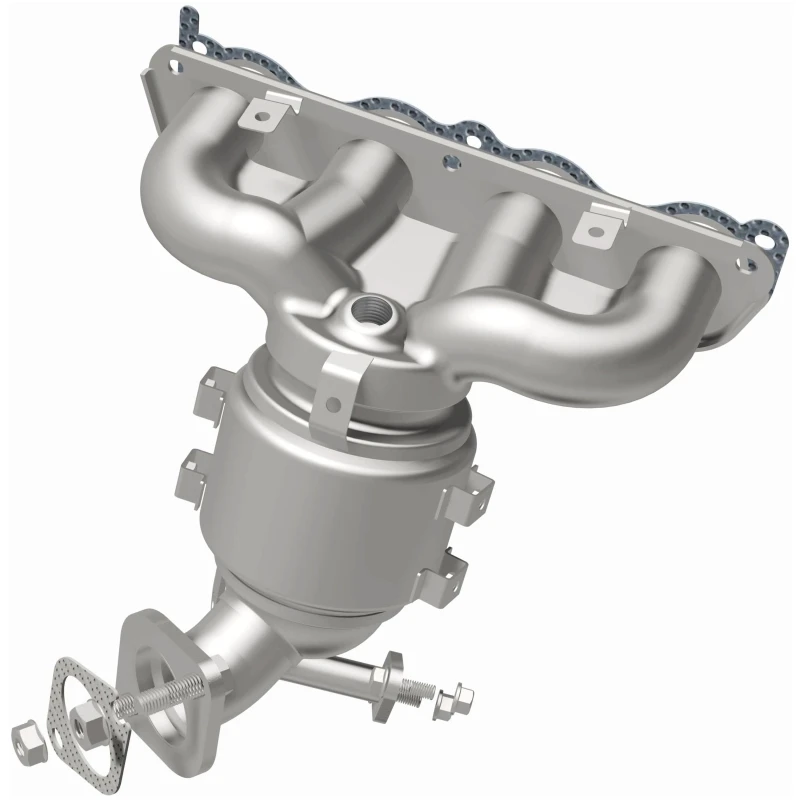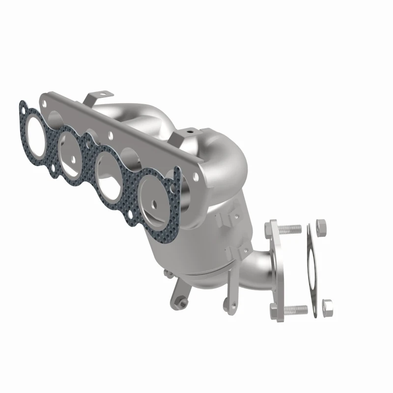 This Magnaflow manifold catalytic converter is designed specifically for the 2019-2020 Kia Forte with a 2.0L engine. It features OEM-grade construction to ensure a precise fit and reliable performance, helping to keep the check engine light off by meeting or exceeding Federal emissions standards. The direct-fit design allows for easy installation without cutting or welding, using included gaskets and hardware to reduce the risk of leaks.