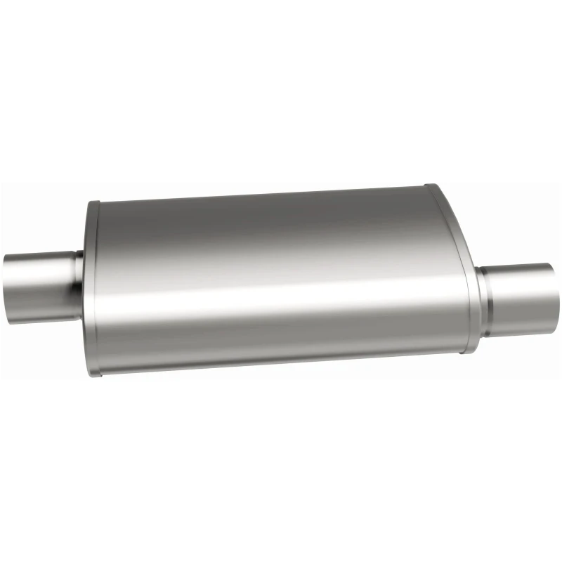 Elevate your ride with the MagnaFlow 5" X 8" Oval Straight-Through Performance Exhaust Muffler. This muffler is engineered to deliver a healthy dose of our signature exhaust sound and dyno-proven performance. Its free-flowing straight-through perforated stainless steel core is wrapped in stainless steel mesh and acoustic fiber fill, ensuring a smooth, deep tone.