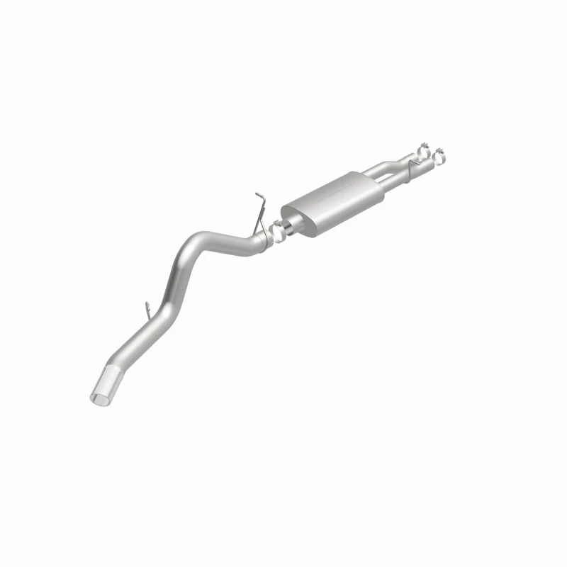 Take your truck to the next level with the MagnaFlow Street Series Cat-Back Performance Exhaust System. This system features a cat-back layout that replaces your ride's stock exhaust components from near the catalytic converter on back. With its fast-flowing, mandrel bent 4in. main piping and 1 Straight-Through mufflers ending in a Single Passenger Side Rear exit with 4in. Polished Welded-On Single Wall Angle Cut Rolled Edge tips, this truck exhaust kit has the performance chops to match its sporty sound and appearance.