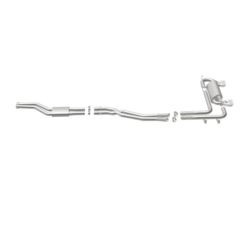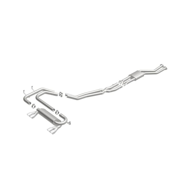Featuring 2.25in. diameter fast-flowing mandrel bent main piping, 2 Straight-Through mufflers, and a Quad Split Rear exit with 3in. Polished Welded-On Double Wall Angle Cut Folded Edge tips, this system is built to last and backed by MagnaFlow's limited lifetime warranty.