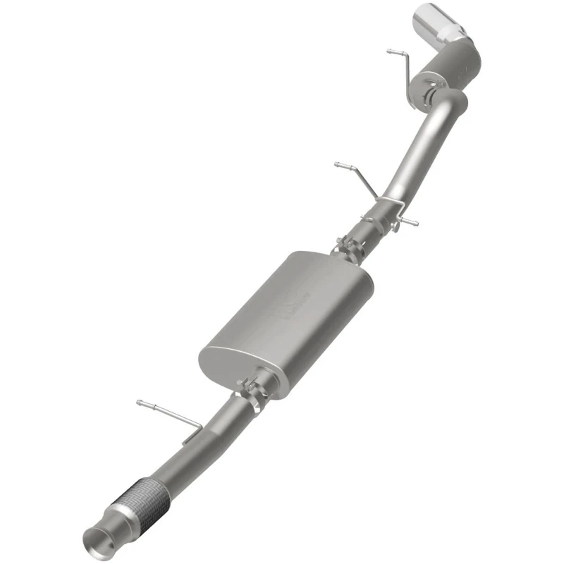 With its fast-flowing, mandrel-bent 3.5in. main piping and 2 Straight-Through mufflers, this exhaust kit has the performance chops to match its sporty sound and appearance. The system features a cat-back layout that replaces your ride's stock exhaust components from near the catalytic converter on back.