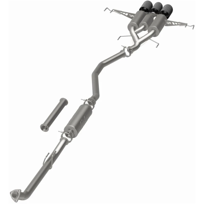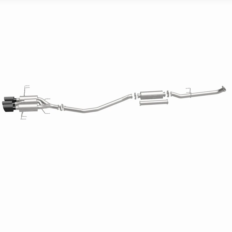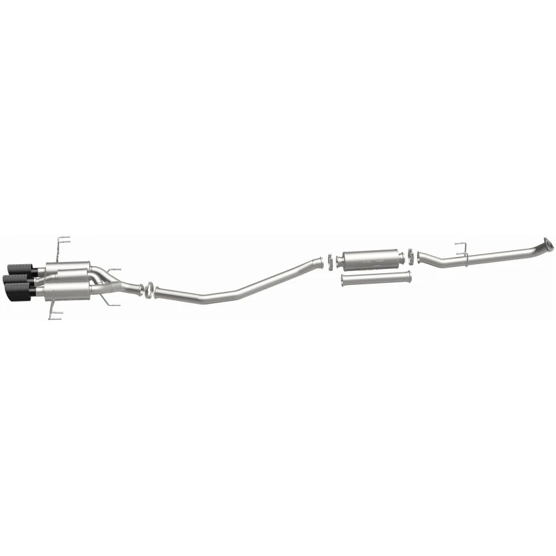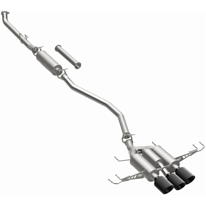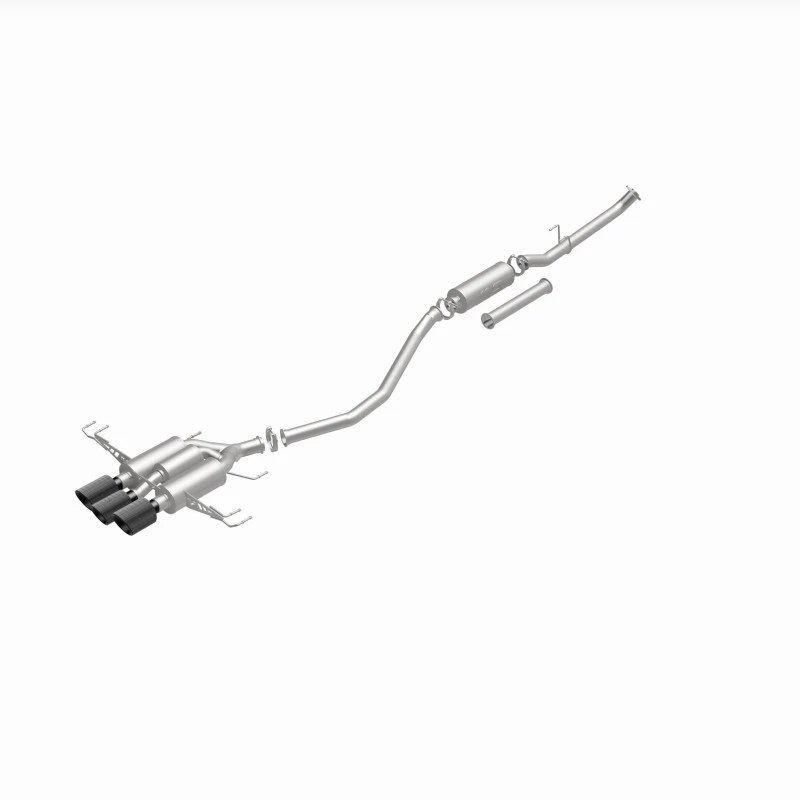 Featuring mandrel-bent tubing and a direct-fit design, this exhaust system is easy to install and requires no modifications to your vehicle. The system includes a high-flow catalytic converter and a rear muffler with a 4.5" quad round carbon fiber tip, giving your Civic a aggressive and sporty look.