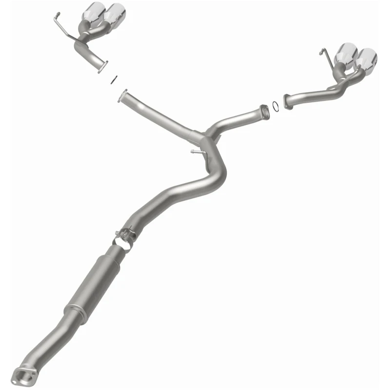 With its fast-flowing mandrel bent 3in. main piping and 1 Straight-Through mufflers, this exhaust system is engineered to produce dyno-proven performance gains in horsepower and torque. The quad split rear exit with 4in. polished welded-on double wall angle cut folded edge tips adds a sporty finish to your vehicle.