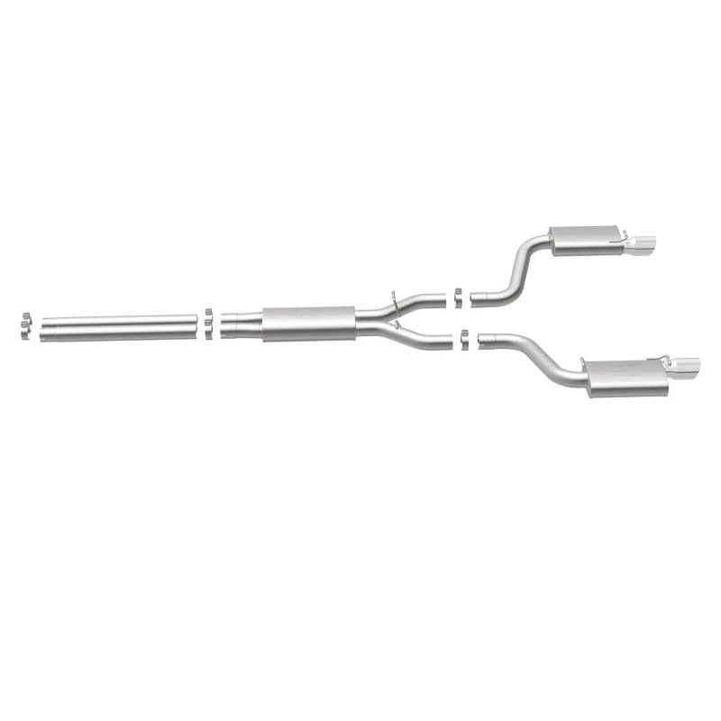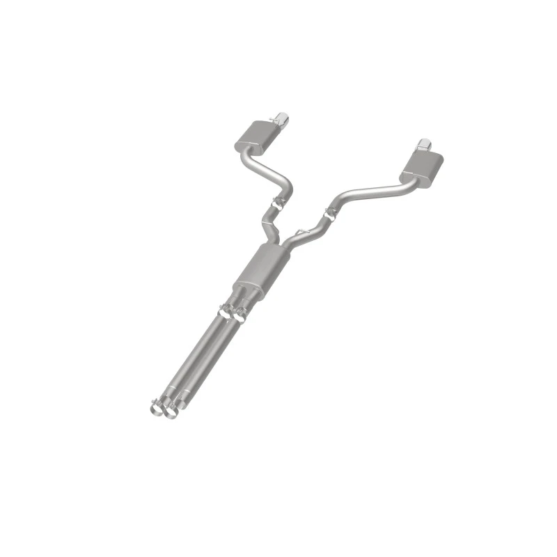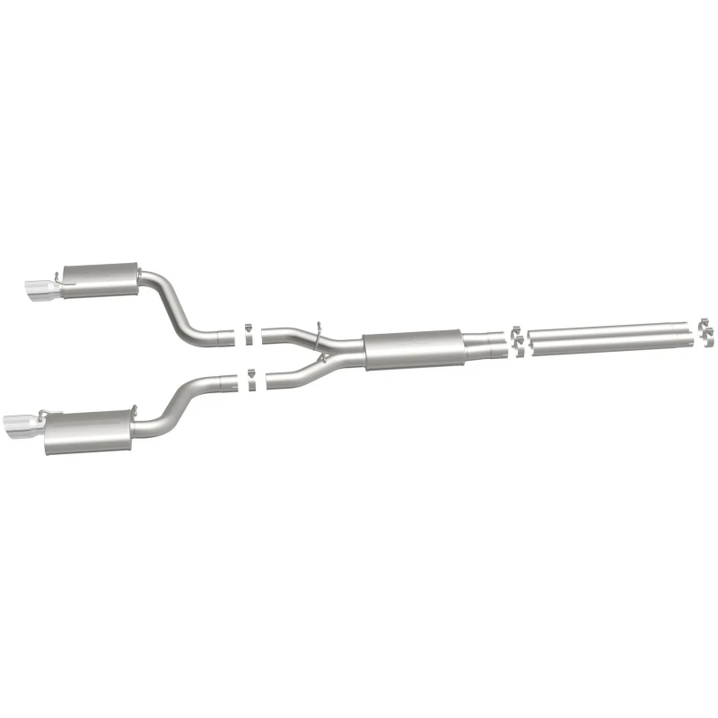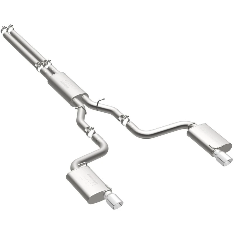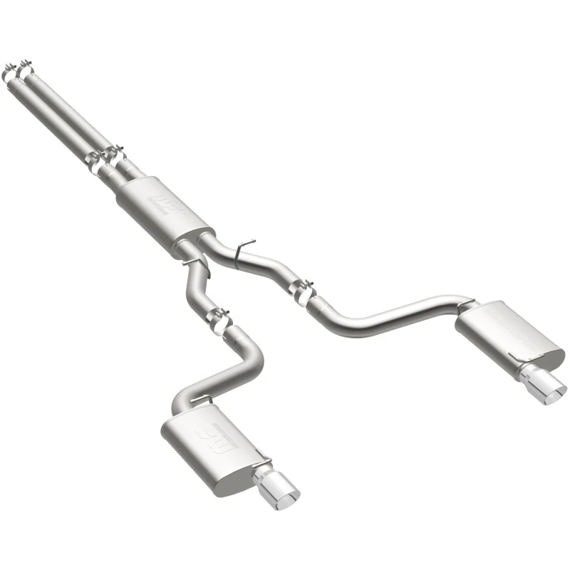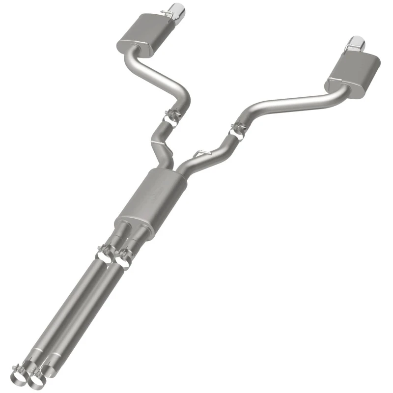 Take your ride to the next level with the MagnaFlow Street Series Cat-Back Performance Exhaust System. This system features fast-flowing, mandrel-bent 3in. main piping and 3 Straight-Through mufflers ending in a Dual Split Rear exit with 4in. Polished Welded-Double Wall-Angle Cut-Folded Edge tips.