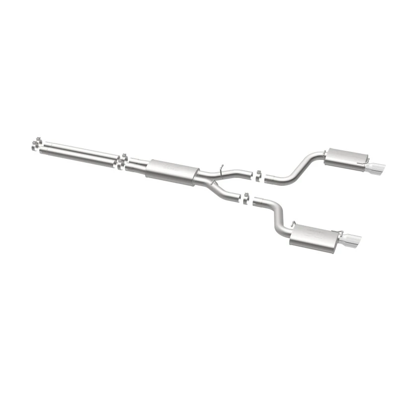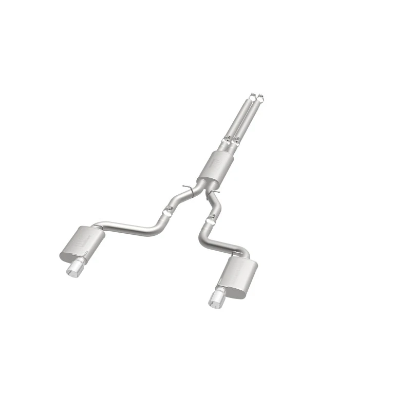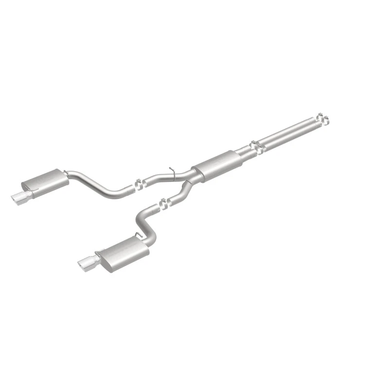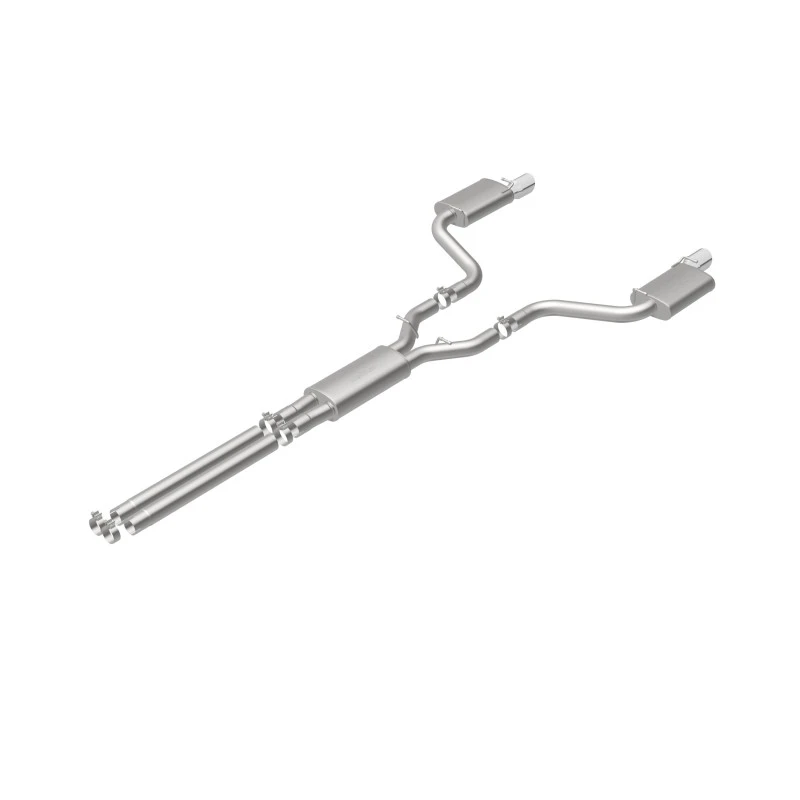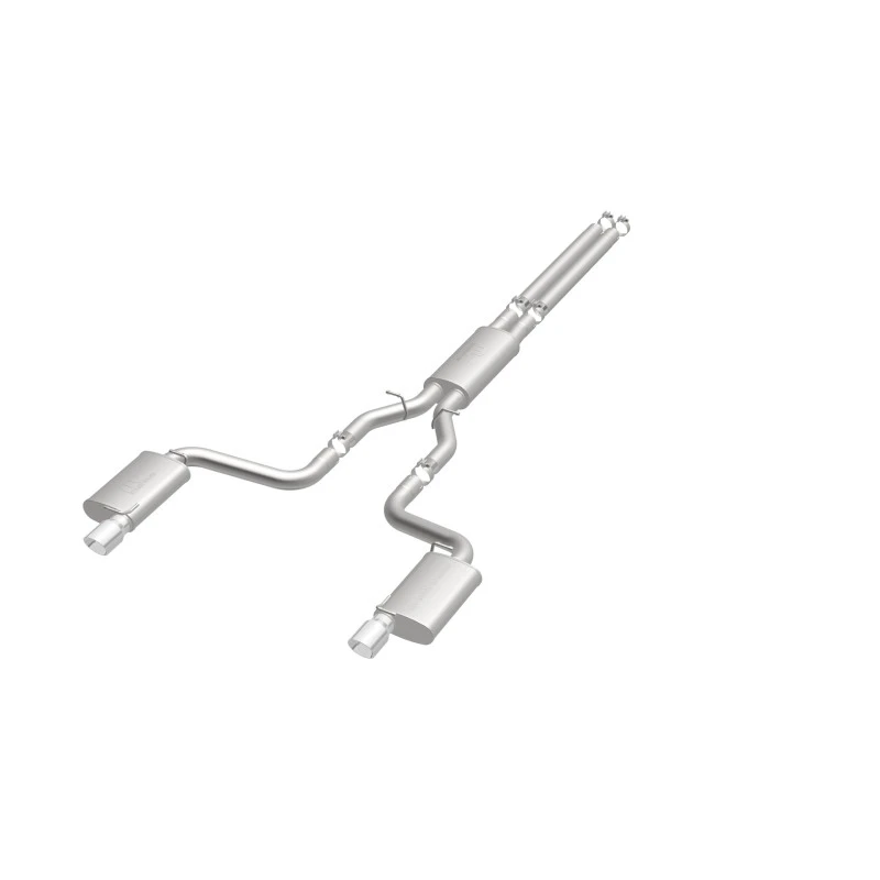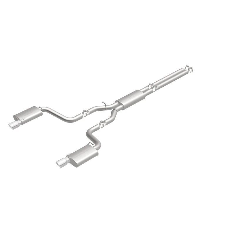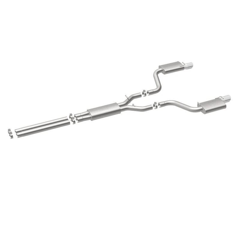 Take your ride to the next level with the MagnaFlow Street Series Cat-Back Performance Exhaust System. This system features fast-flowing, mandrel-bent 3in. main piping and 3 Straight-Through mufflers ending in a Dual Split Rear exit with 4in. Polished Welded-Double Wall-Angle Cut-Folded Edge tips.