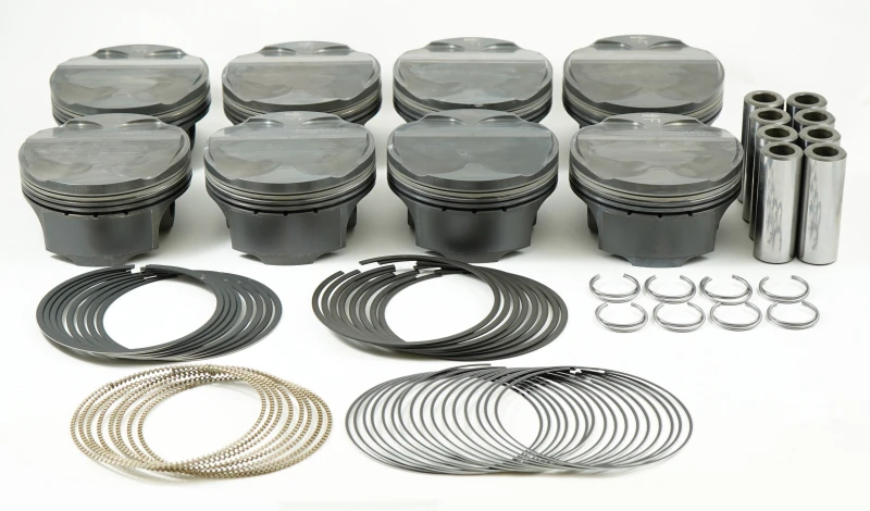 This Mahle MS Piston Set is designed for the Ford Coyote engine, offering a high-performance upgrade with its 3.630-inch bore, 3.65-inch stroke, and 5.933-inch rod length. The pistons feature a .866-inch pin diameter and a 10cc volume, ensuring optimal engine performance and reliability.