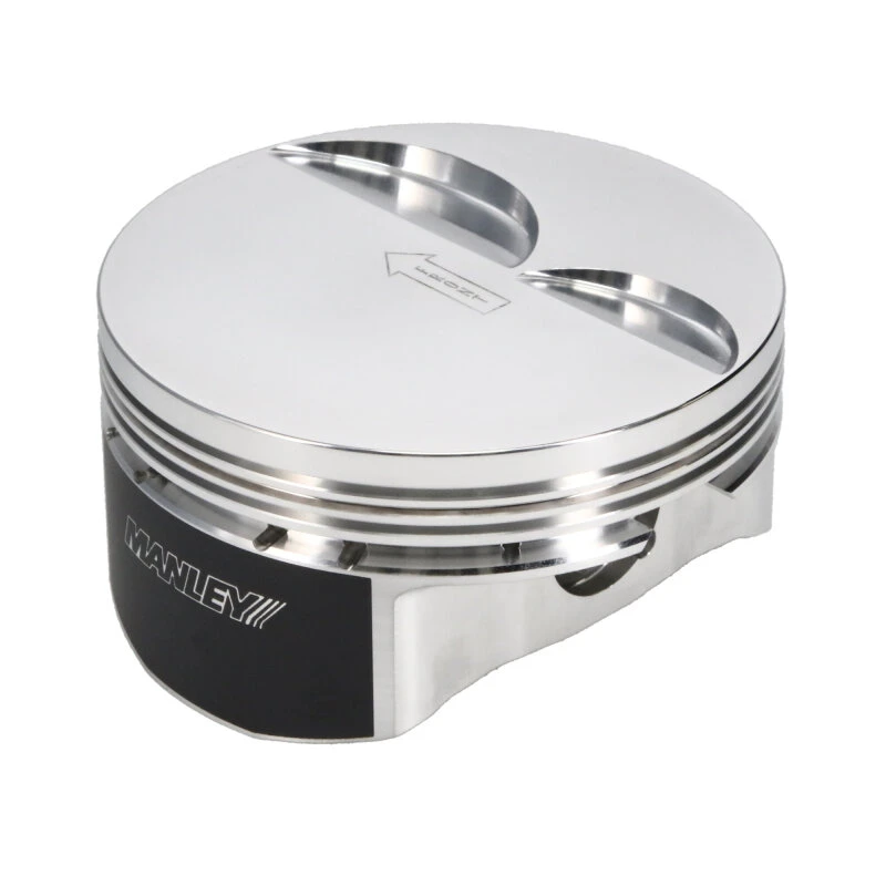 Each piston is crafted with exacting ring lands and grooves to enhance ring seal and improve engine efficiency. The set includes Chrome Moly wrist pins for reliable strength, with options for upgraded materials in select SKUs. Manley's unique fixturing process ensures perfect ring groove to skirt squareness, optimizing performance and longevity.