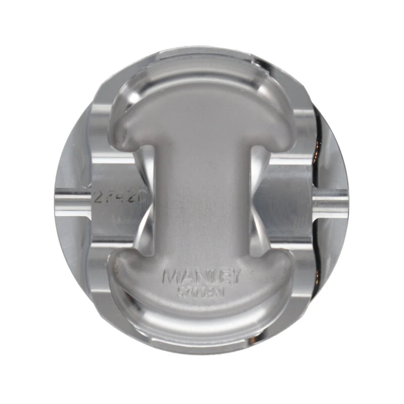 Manley's exacting ring lands and grooves ensure enhanced ring seal for increased power output, while the cam and barrel skirt profiles reduce cylinder wall wear. The piston includes a premium Chrome Moly wrist pin standard, with options for upgraded materials on select SKUs. Unique fixturing allows precise machining for ultimate ring groove to skirt squareness, ensuring reliable performance under high stress.