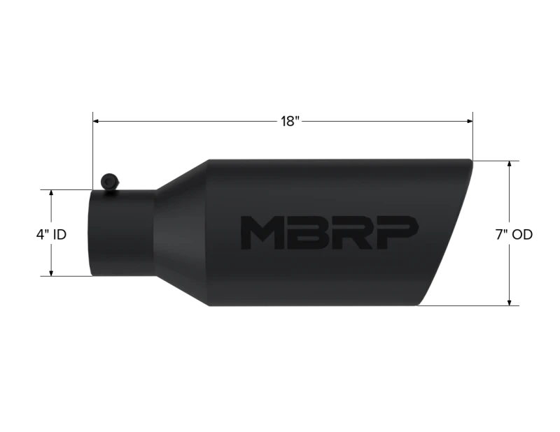 Finish off your MBRP exhaust in style with this high-quality, black finish T304 stainless steel exhaust tip. The rolled end design provides a sleek and aggressive look, while the 4in inlet and 18in length ensure a perfect fit for your vehicle.