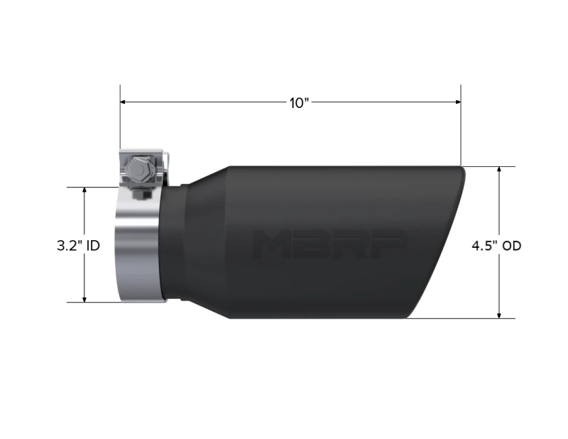 MBRP Universal Tip 4.5in OD / 3.2in Inlet / 10in Length / Angled Cut Rolled End - Black