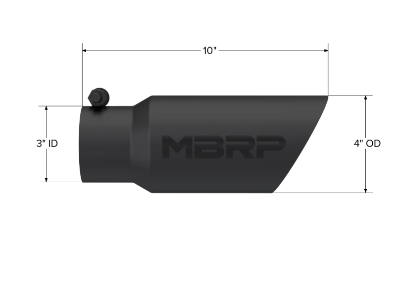 Elevate your vehicle's style and performance with the MBRP Universal Tip 4in OD 3in Inlet 10in Length Dual Wall Angled End Black. This high-quality exhaust tip is designed to provide a perfect fit and years of enjoyment. Made from T304 stainless steel, it features a durable black finish that resists cracking, discoloration, and peeling.