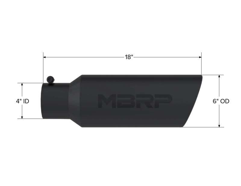 Elevate your vehicle's style and performance with the MBRP Universal Tip 6in OD Rolled End 4in Inlet 18in L Black Coated Exhaust Tip. Made from high-quality T304 stainless steel, this exhaust tip is designed to provide a perfect fit and years of enjoyment.