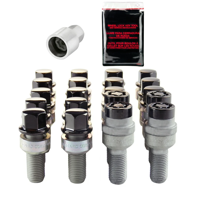- Set of 16 lug bolts, 4 wheel locks, 1 key, and 1 key storage pouch