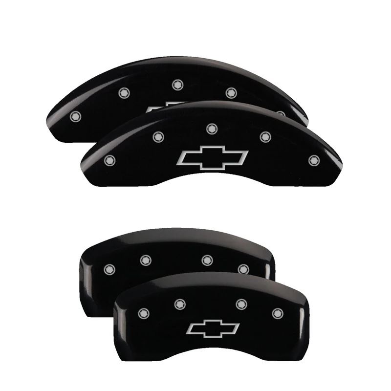 MGP 4 Caliper Covers Engraved Front & Rear Bowtie Black finish silver ch