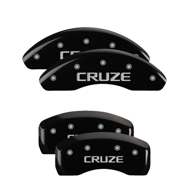 These aluminum caliper covers are finished with a durable black powder coat and feature engraved front and rear "Cruze" logos in silver characters.