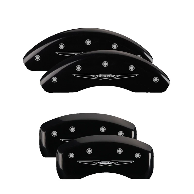 MGP 4 Caliper Covers Engraved Front & Rear Style 2/Chrysler Wing Black finish silver ch