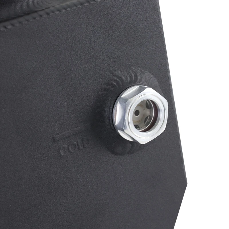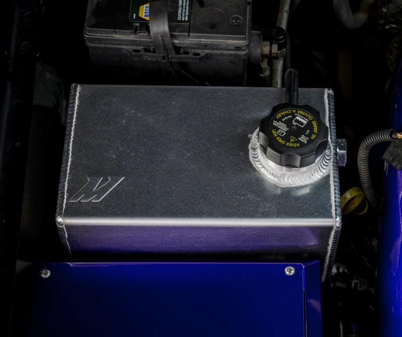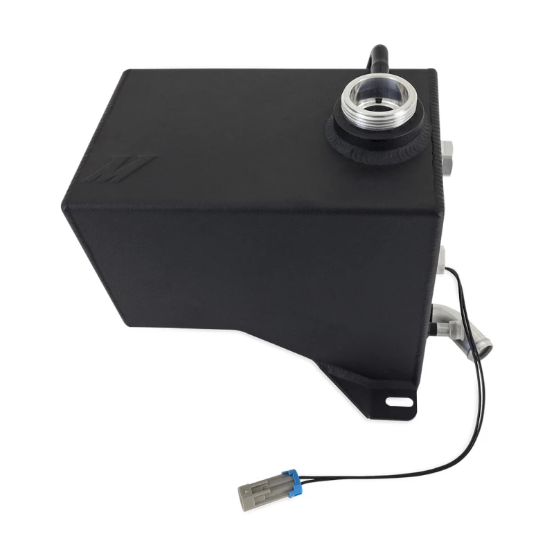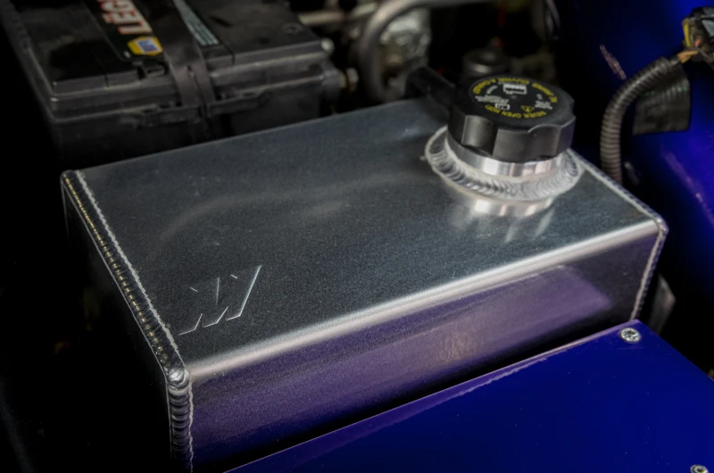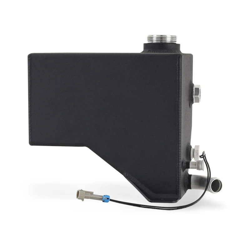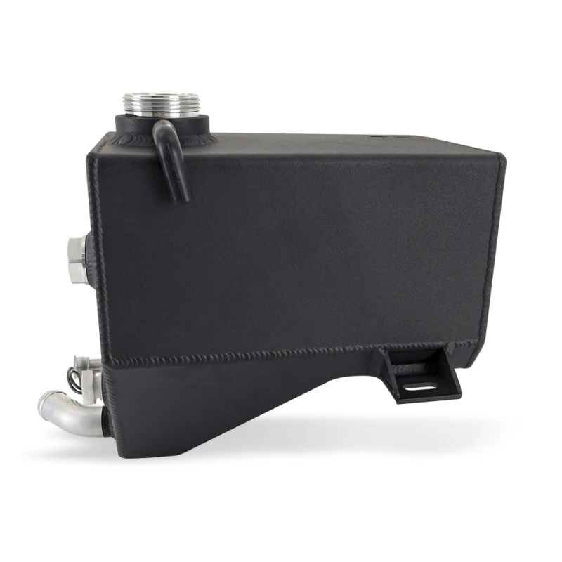 The micro wrinkle black powdercoated finish provides a clean and stealthy look, while the natural option allows for a custom powder coat, anodized, or hydro dipped design. The integrated internal baffles keep coolant near the overflow port during aggressive driving, preventing air entry into the coolant system.