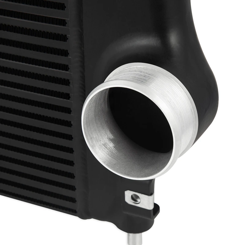 The robust cast-aluminum end tanks resist cracking under high heat and pressure, while the larger inlet and outlet reduce restriction for improved flow. This intercooler also includes an adapter cold-side pipe with DuraCore boot and constant-tension T-bolt clamps.