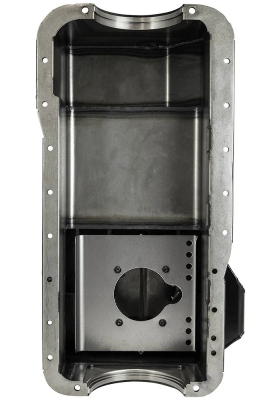 This high-performance oil pan is designed for the Ford 351W engine, offering superior oil control and durability. It features a rear sump design with billet end seals, making it ideal for road racing applications. The pan is fully fabricated from steel and includes a clear zinc finish for corrosion resistance.