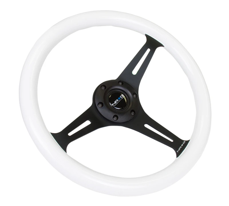 NRG Classic Wood Grain Steering Wheel (350mm) Glow-In-The-Dark Blue Grip w/Black 3-Spoke Center