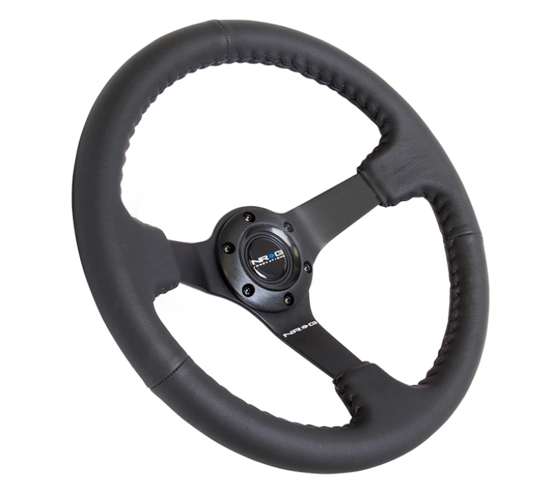 NRG Reinforced Steering Wheel (350mm / 3in. Deep) Black Leather with Black Baseball Stitch (Odi Bakchis Edition)
