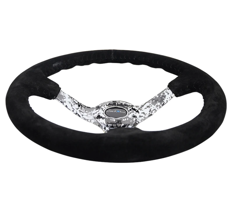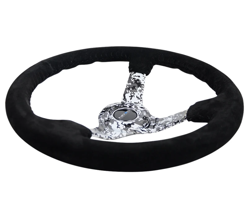 NRG Reinforced Steering Wheel (350mm / 3in. Deep) Black Suede w/Hydrodipped Digi-Camo Spokes