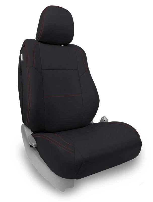 PRP 12-15 Toyota Tacoma Front Seat Covers/ Fold Flat Edition (Pair) - Black with Red Stitching