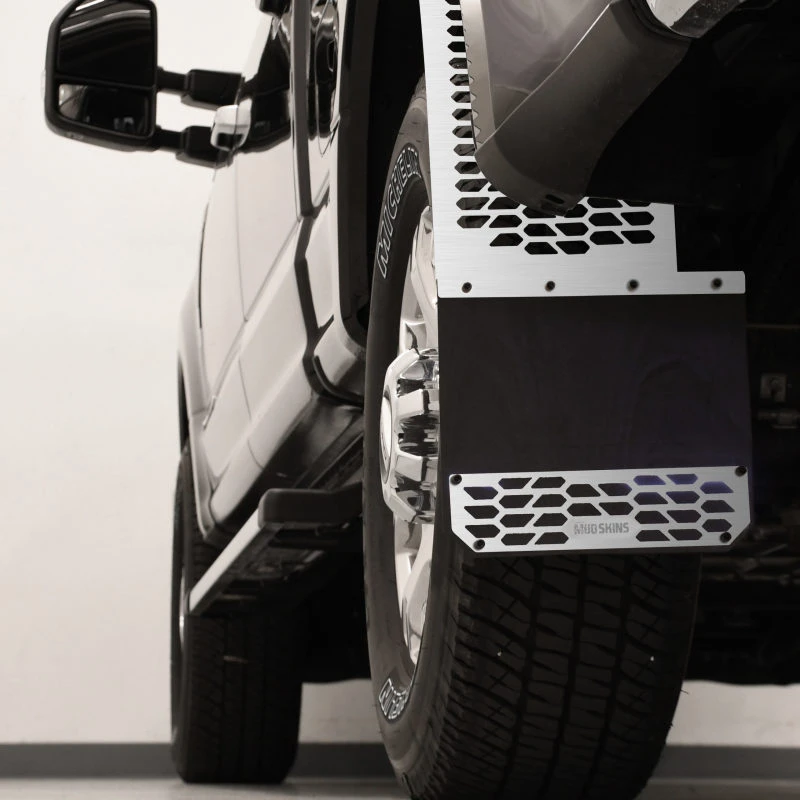 Putco 11-16 Ford SuperDuty - Set of 2 (Excl Dually Rear) Mud Skins - Brushed SS w/ Hex Shield