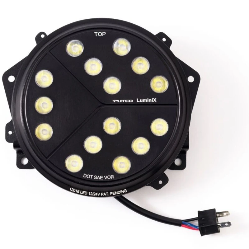 Upgrade your Jeep Wrangler's lighting with the Putco Luminix high-power LED headlights. These OEM replacement LED headlights push up to 12,000 lumens on high beams and 7,200 lumens on low beams.