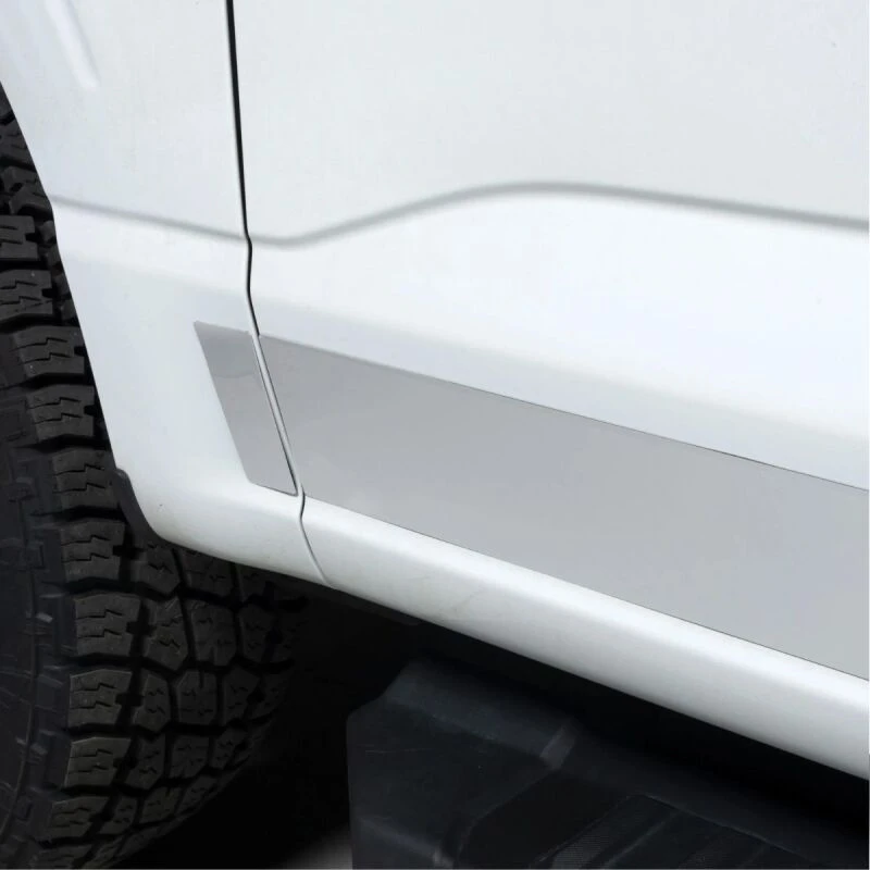 Constructed out of 26GA premium T-304 that is polished to have a mirror-like finish. We have thought of everything when making these custom-fit rocker panels and that even includes no-drill or cutting installation.