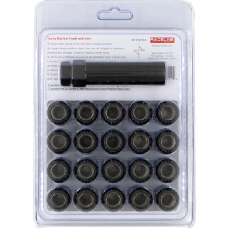 Raceline 12x1.5mm Spline Black Lug Nuts (20 Pack)