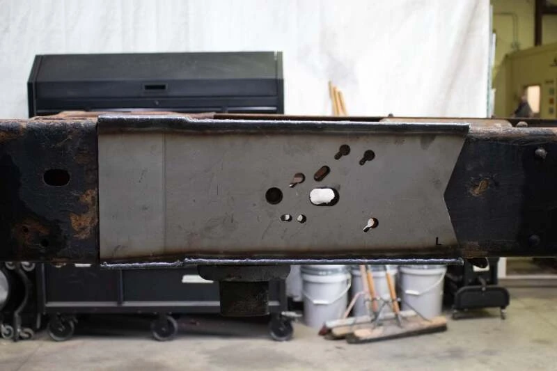 This Rust Buster frame section is designed to replace the over-axle frame area between the rear fuel tank crossmember and the spare tire crossmember for enhanced structural integrity. It is specifically engineered for the 2001-2010 Chevy Silverado and GMC Sierra 2500HD short bed models.