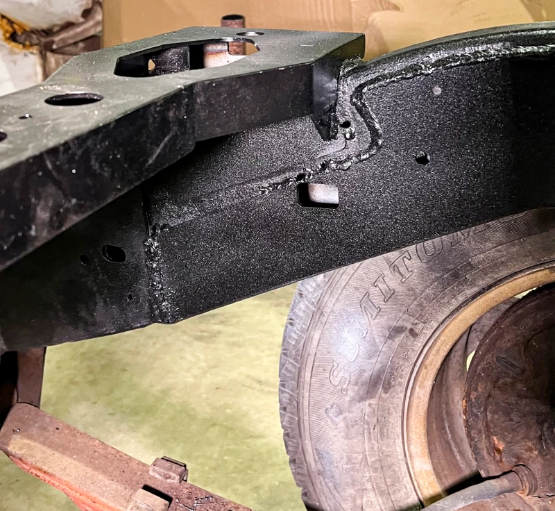 This frame section is designed to reinforce and protect the rear over-axle area of your vehicle, ensuring structural integrity and durability. It is crafted from heavy-duty 11-gauge steel, providing a robust solution against rust and corrosion.
