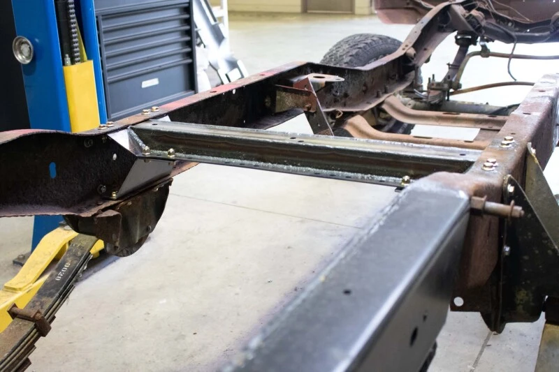 The RustBuster Center Frame Crossmember is engineered to restore structural integrity and combat rust issues in classic Chevrolet trucks. Designed specifically for 1973-1980 Chevy C10 and K10 Standard Cab models with 8 ft. beds, this crossmember provides robust support to the vehicle's frame.