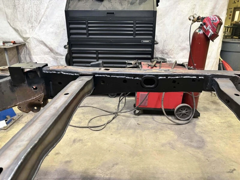 The RustBuster Over-Axle Frame Section Left Side is a heavy-duty replacement frame component designed for restoring rust-damaged sections on the left side of the vehicle frame. Crafted from robust 11-gauge steel, this section ensures structural integrity and durability for extended vehicle life.