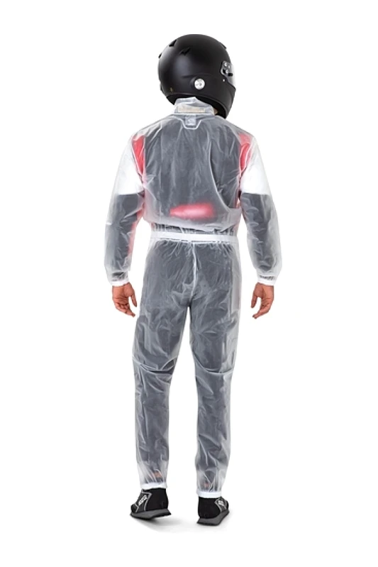 This Sparco T1 Evo suit is designed for karting enthusiasts who need superior water protection during wet conditions. Made from waterproof clear Polyamide material, it features plastic laminated inner seams and a removable helmet collar, ensuring maximum comfort and visibility.