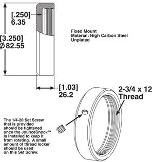 The Fixed Mount assembly can be welded to your mounting point, providing a secure and stable attachment for your shock. It's designed to work seamlessly with the Domed Foot on the shaft end of the shock (part# 25602).