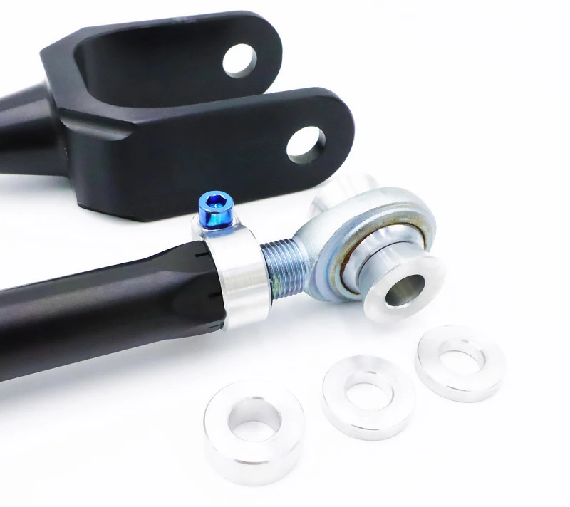 Our arms feature low-friction, smooth articulating FK Spherical Bearings, eliminating the stock mushy rubber bushing for a more responsive steering feel. Plus, with our 6061 aluminum spacers, you can tune your anti-dive geometry for maximum performance.