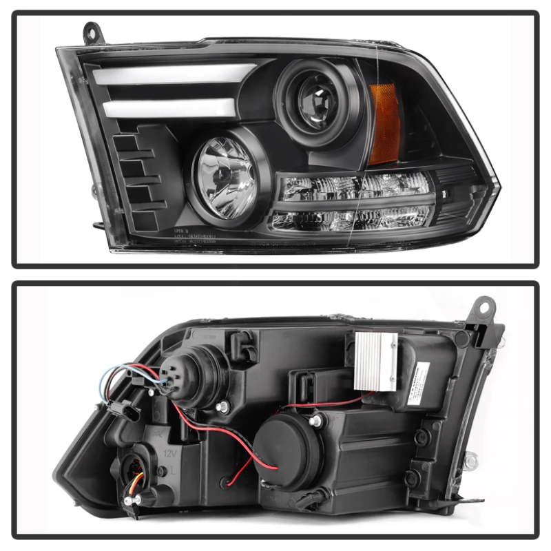 Spyder Dodge Ram 09-12 Projector Headlights Light Bar DRL Black PRO-YD-DR09-LBDRL-BK