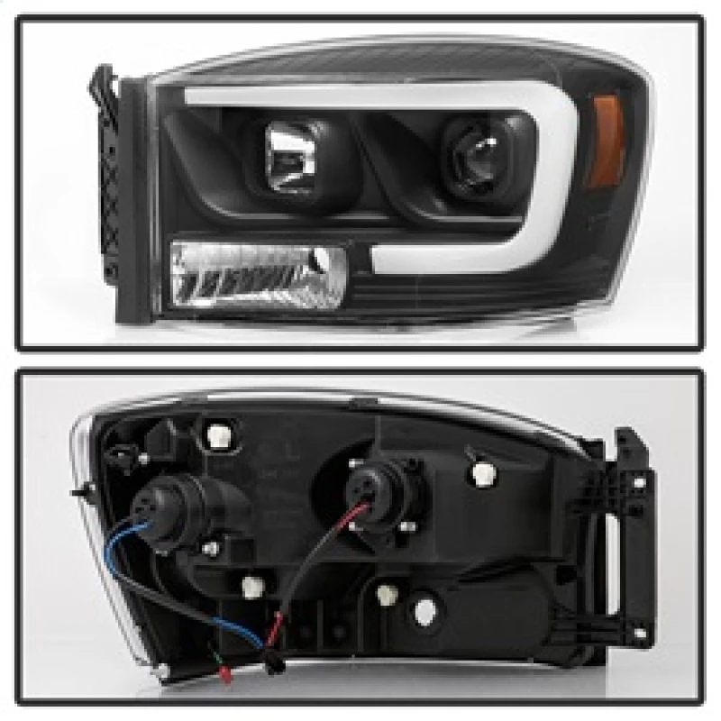 Spyder Dodge Ram 1500 06-08 V2 Projector Headlights - Light Bar DRL - Black (PRO-YD-DR06V2-LB-BK)