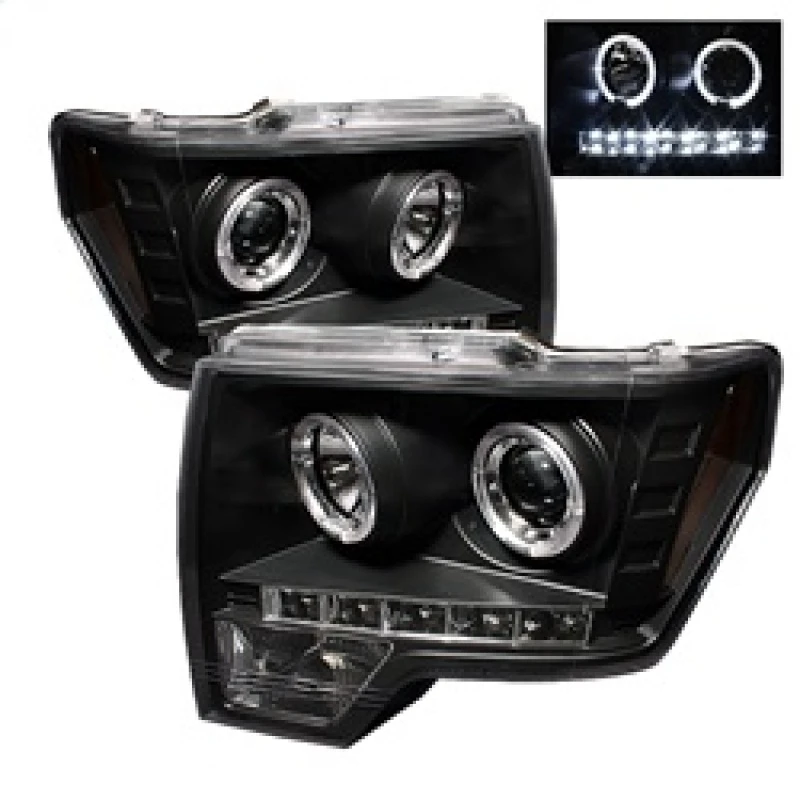 Spyder Ford F150 09-14 Projector Headlights Halogen Model- LED Halo LED Blk PRO-YD-FF15009-HL-BK