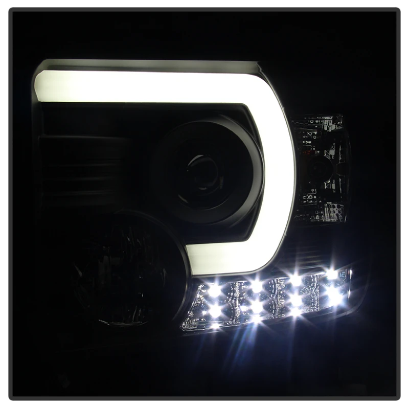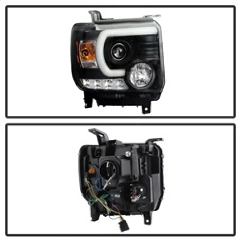 Spyder GMC Sierra 14-16 Projector Headlights Light Bar DRL Black PRO-YD-GS14-LBDRL-BK