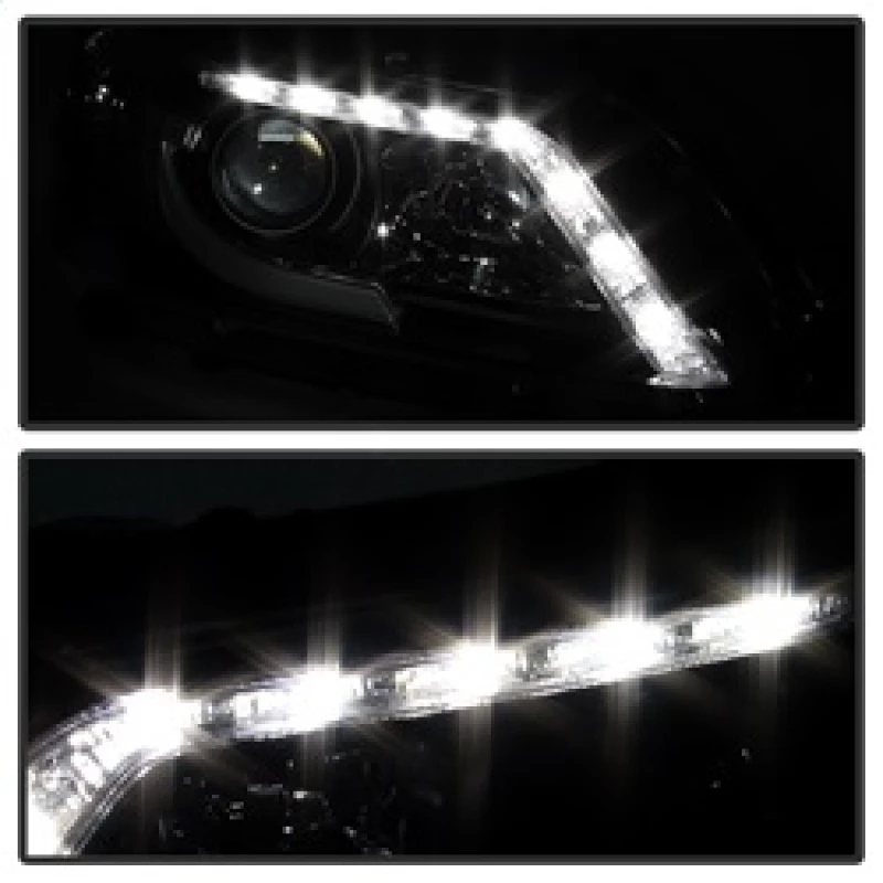 Spyder Honda Accord 2013-2015 4DR Projector Headlights Light Bar DRL Black PRO-YD-HA13-LBDRL-BK