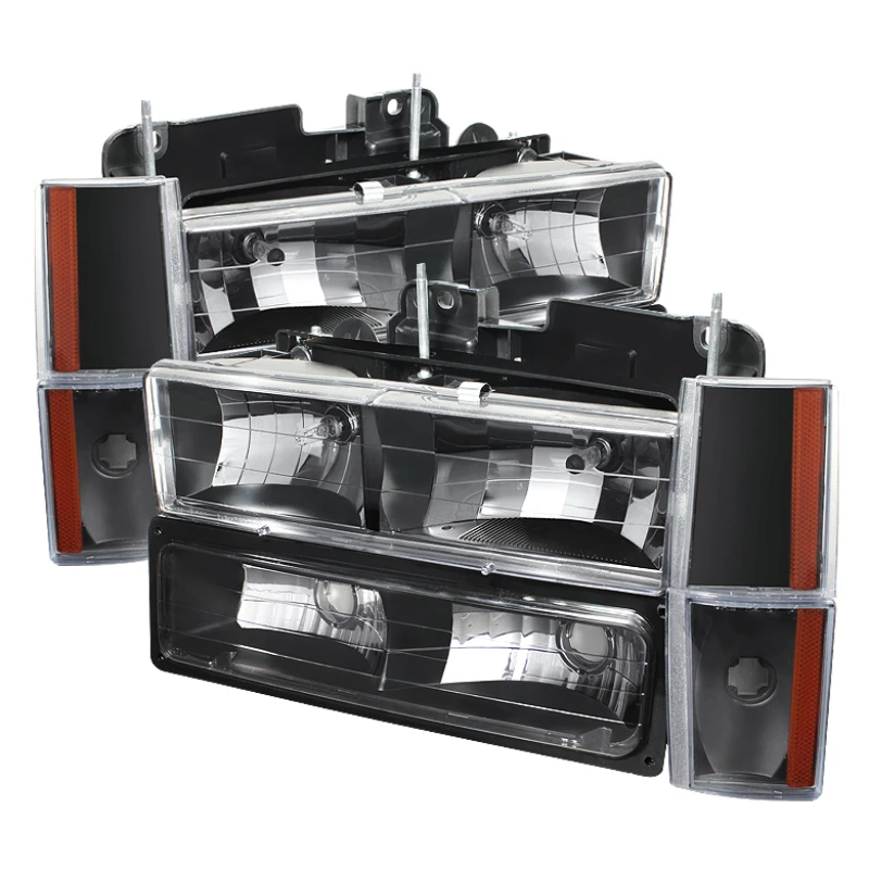 Xtune GMC Yukon 92-93 Crystal Headlights w/ Corner & Bumper Black HD-JH-GMCCK88-AM-BK-SET