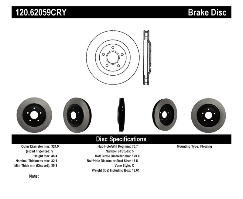Stoptech 97-04 Chevy Corvette Left Front CRYO-STOP Rotor