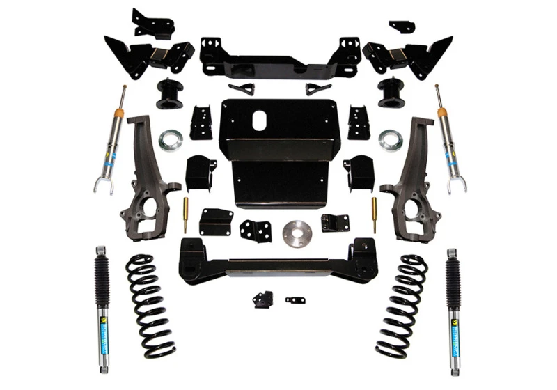 This comprehensive knuckle-style suspension lift kit is designed for the 2012-2018 and 2019-2021 Classic Dodge Ram 1500 4WD models, providing a 6-inch lift height. It includes Bilstein front struts and rear shocks, ensuring superior ride quality and handling both on-road and off-road. The kit is compatible with gas and Eco diesel models.