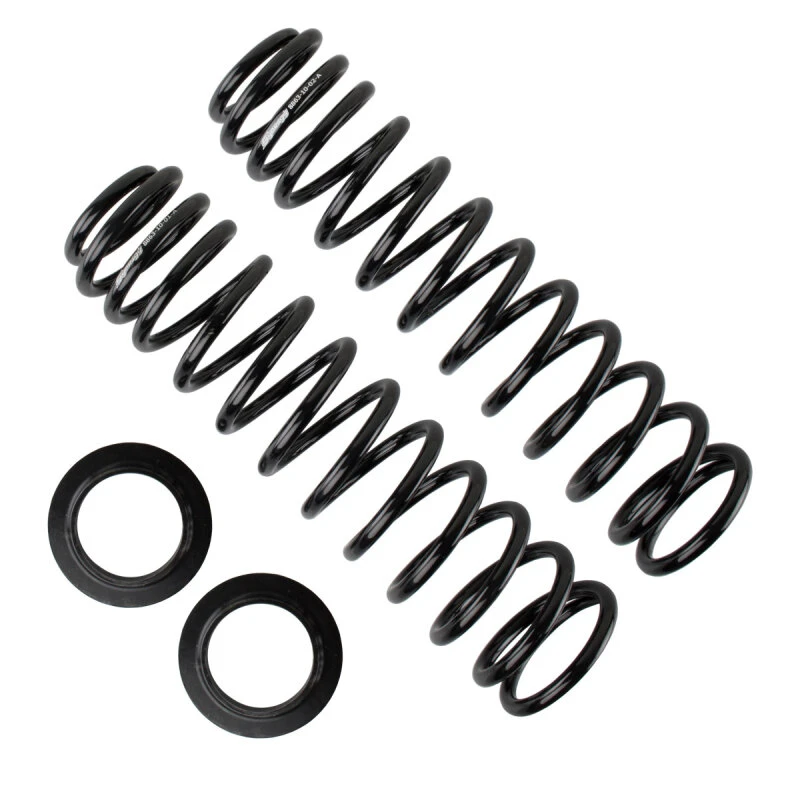 These multi-rate front lift coil springs are designed specifically for the Jeep JL and JT models, enhancing the vehicle's performance and stability. They are crafted to accommodate the unique load differences on each corner, ensuring a level stance. The springs feature a softer initial rate to prevent coming loose in the coil tower, even with long travel shocks, and a stiffer ride rate to support additional weight from accessories like bumpers and skid plates.