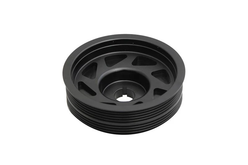 This lightweight crank pulley is designed to enhance performance by improving throttle response and increasing acceleration. Constructed from high-quality CNC machined billet aluminum, it maintains strength while reducing weight.
