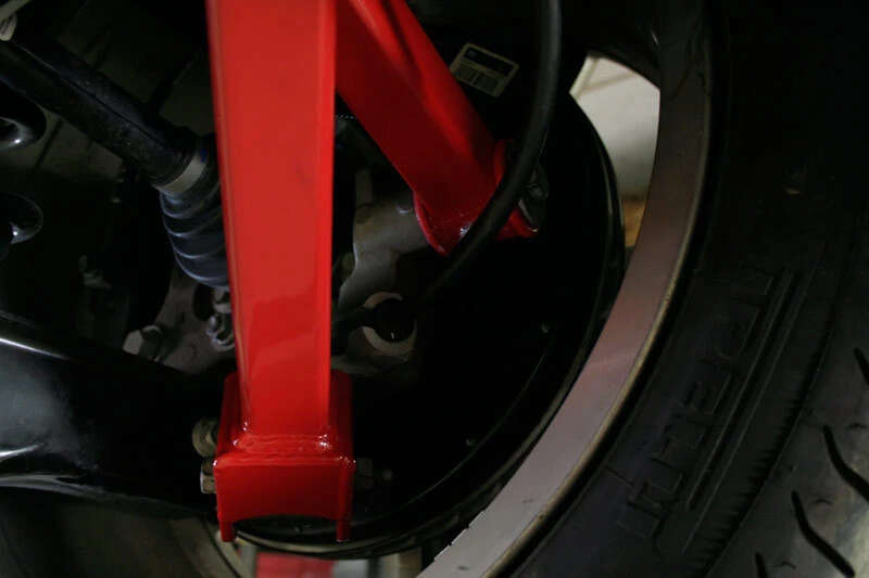 Our trailing arms are fabricated from 1” x 2” rectangular tubing and feature ¼” thick CNC machined mounting plates. They are assembled with fluted, greaseable, and low deflection polyurethane bushings from Energy Suspension.